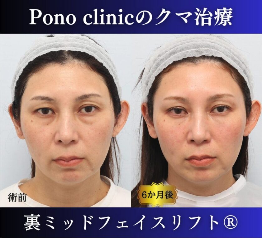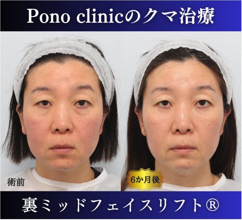リスク/副作用:腫れ・内出血・左右差・違和感・イメージとの違いなどを生じる事があります。 費用:裏ミッドフェイスリフト®750,000円、サポーター糸代110,000円、エクスパレル麻酔50,000円、幹細胞培養液点滴100,000円、術後漢方セット18,000円、麻酔代50,000円(施術当時) -